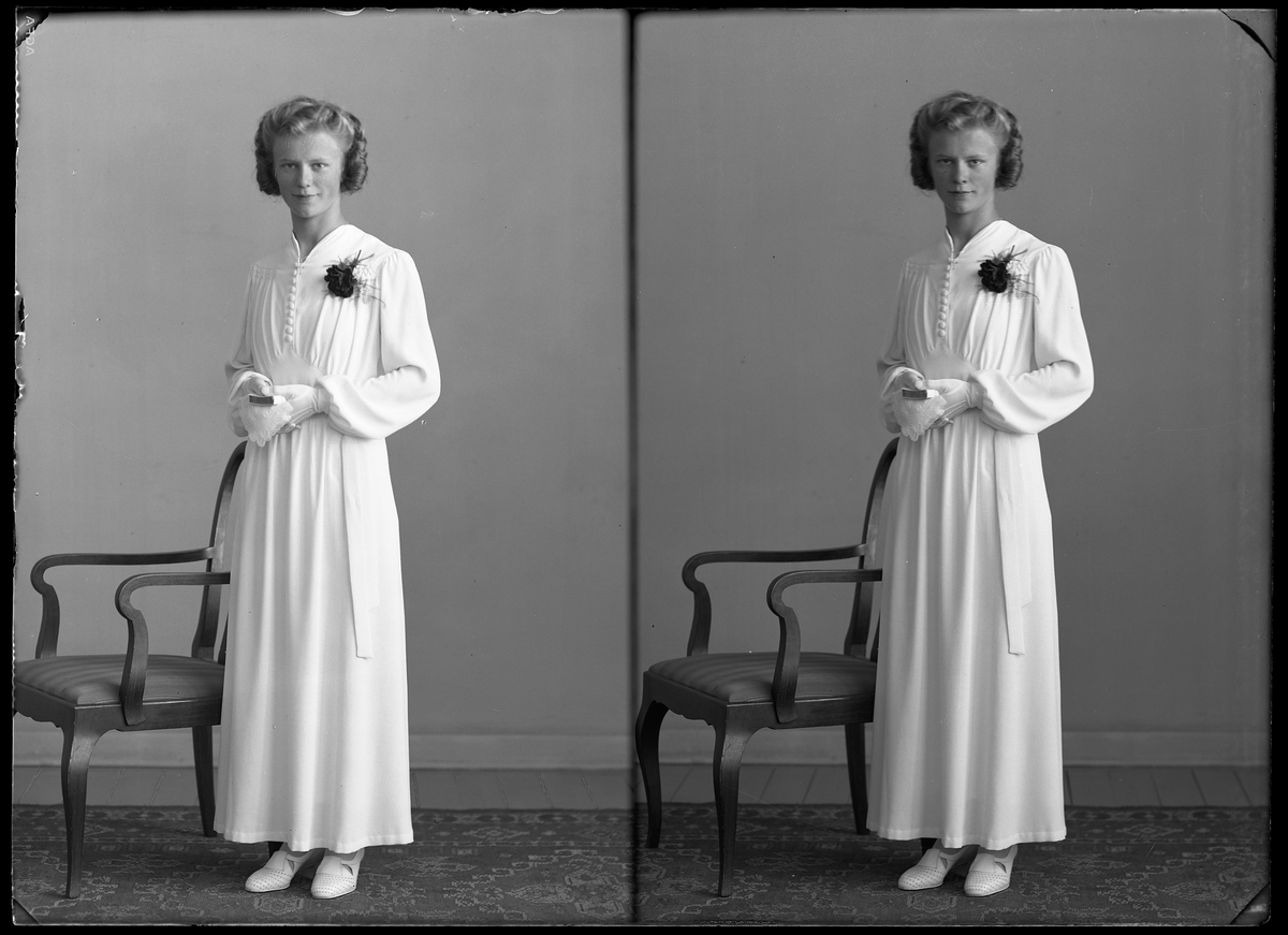 Titel: Porträtt. Läsfoto, Ingvor Alvarsson, Norrby, Berg, Hallstahammar. Ur Gustaf Åhmans samling.