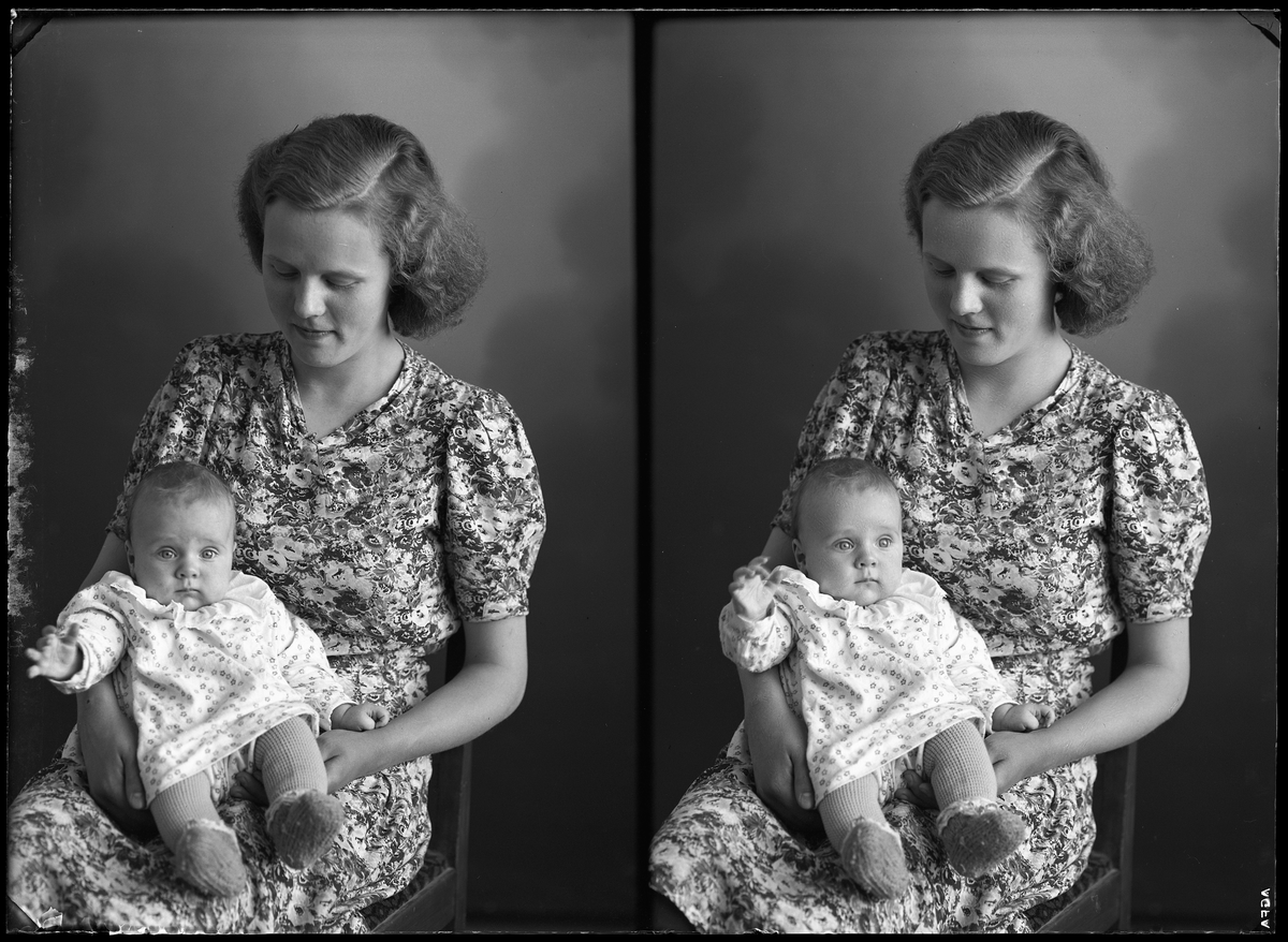 Grupporträtt. Kvinna och barn, Bertil Pettersson (Hedström). Ur Gustaf Åhmans samling.