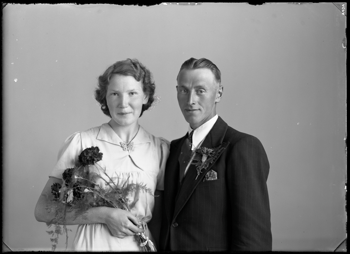 Bröllopsporträtt, brudpar. Gustaf Eriksson, Mölntorps gård, Kolbäck.