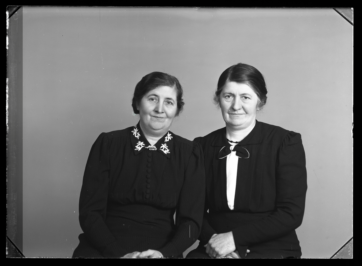 Grupporträtt, två systrar. Fru Dahlberg, Kolbäck.