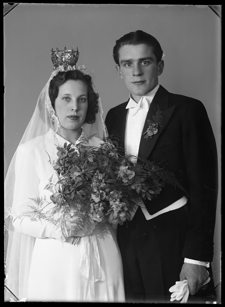 Bröllopsporträtt. Brudpar, Per-Erik Fallegård, Västerlånggatan 7, Köping.