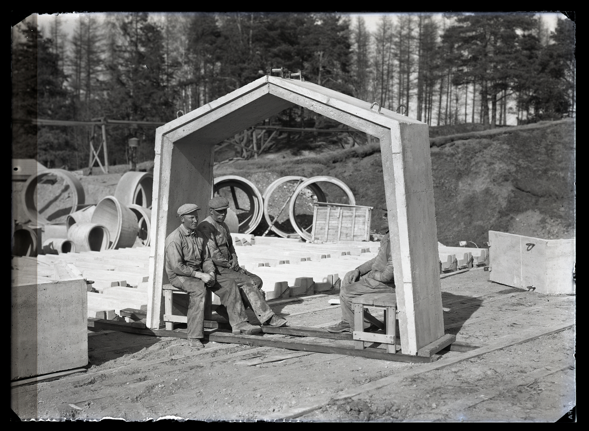 Grupporträtt, tre män, Cementgjuteriet, Kolbäck.