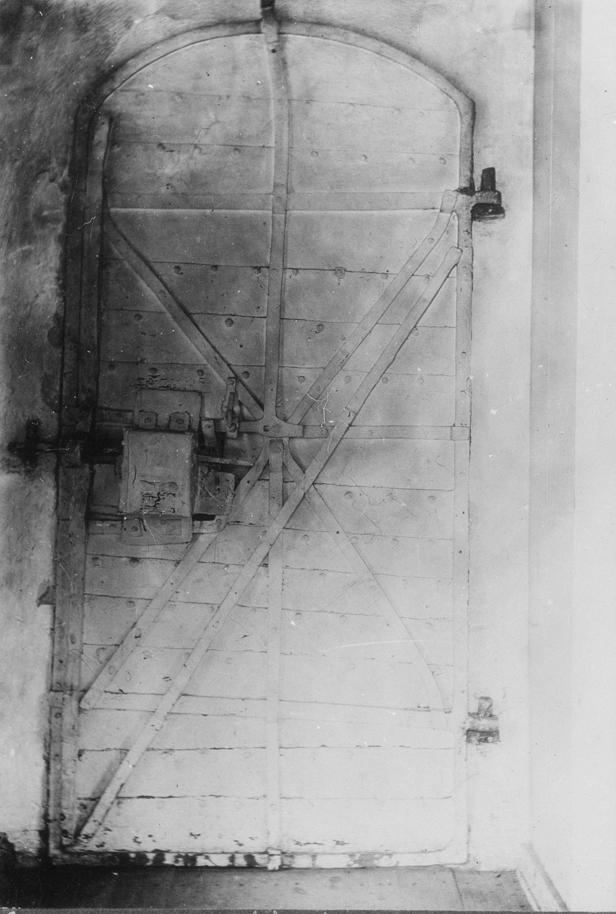 Dörren mellan långhus och sakristia. Reprofoto av originalfoto av Helge Kjellin, 1912.