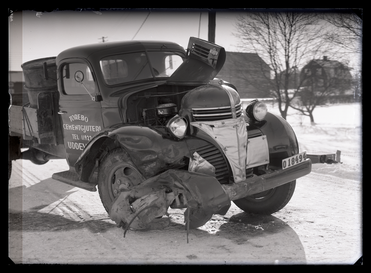 Krockskadad bil, Landsfiskal Andersson, Kolbäck, vid Munktorps station.