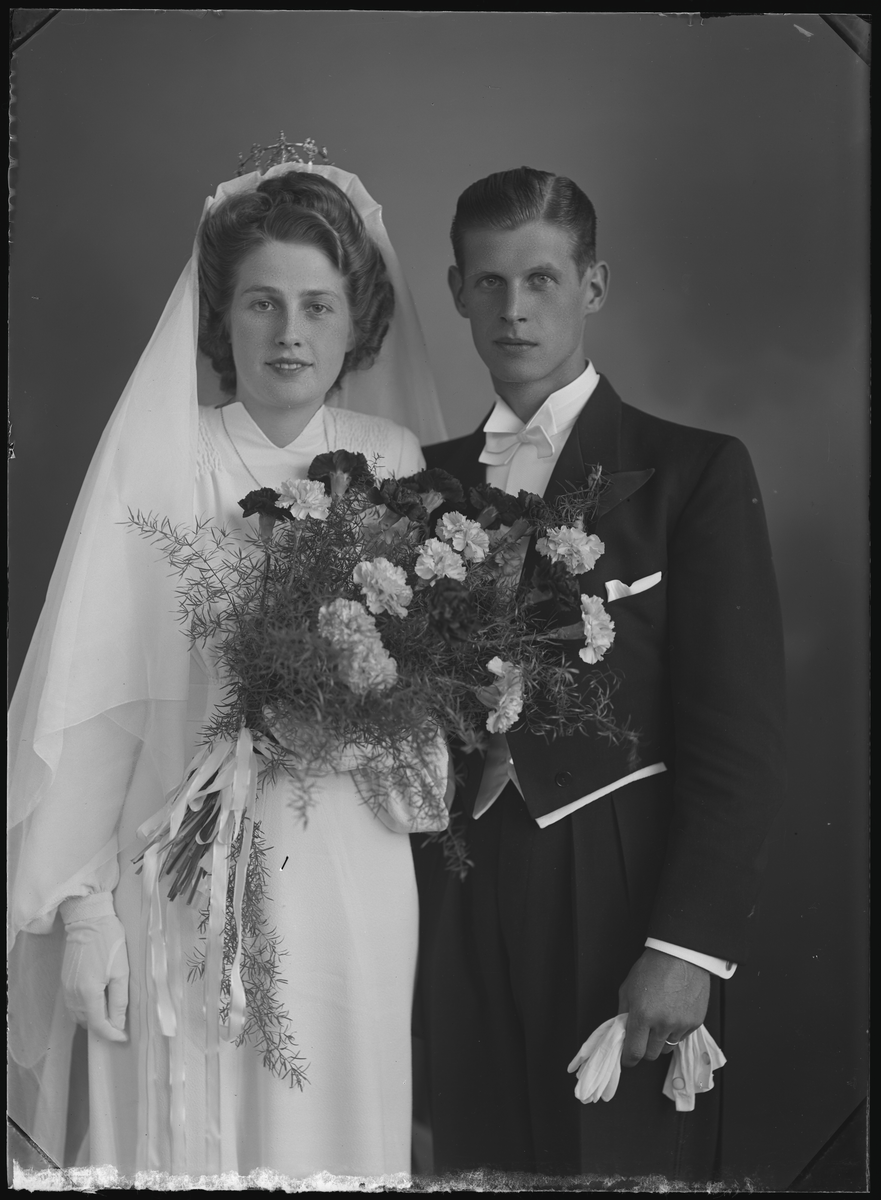 Bröllopsporträtt, brudpar. Egon Gustafsson. Ur Gustaf Åhmans samling.