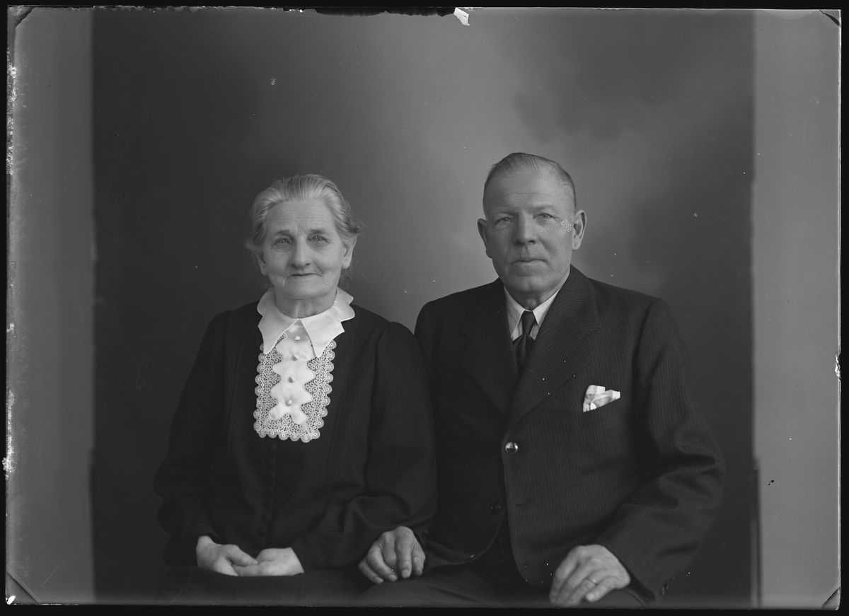 Grupporträtt, äldre man och kvinna. Ur Gustaf Åhmans samling.
