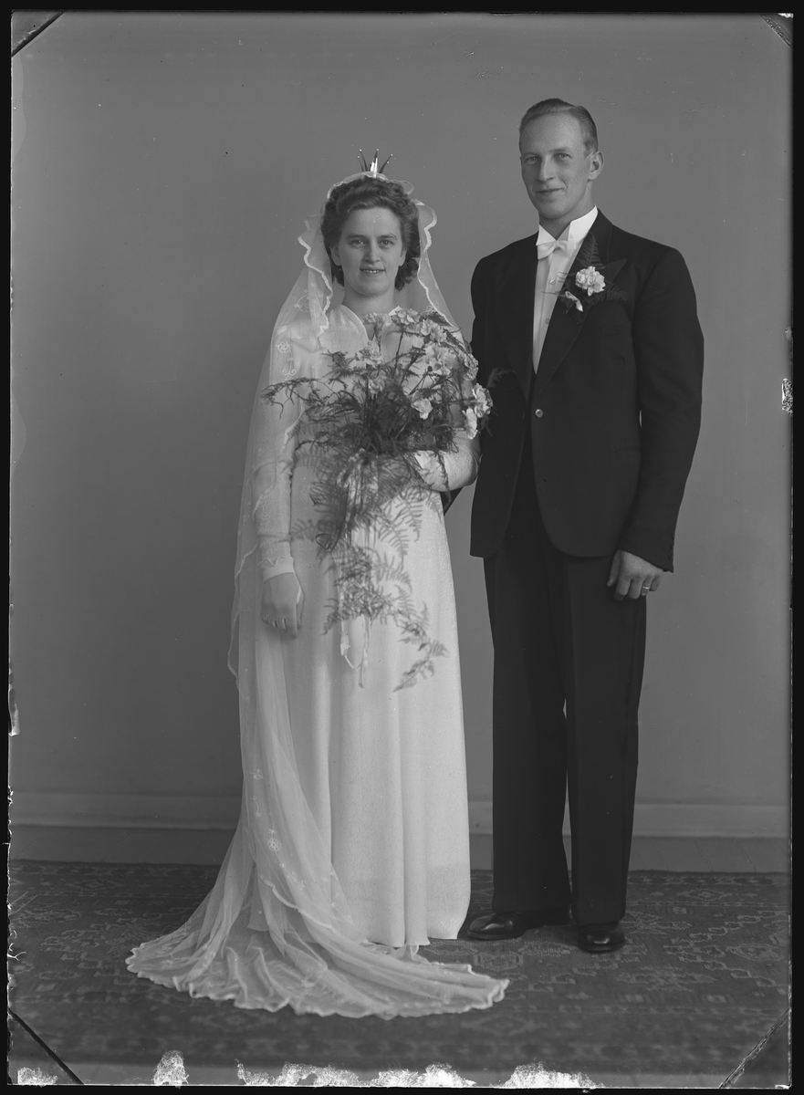 Bröllopsporträtt, brudpar. Sten Hammarström. Ur Gustaf Åhmans samling.