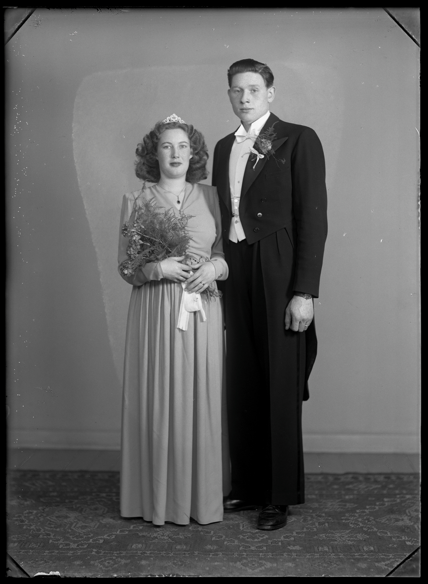 Bröllopsporträtt, brudpar. Arne Segerström, Sörstafors, Kolbäck.