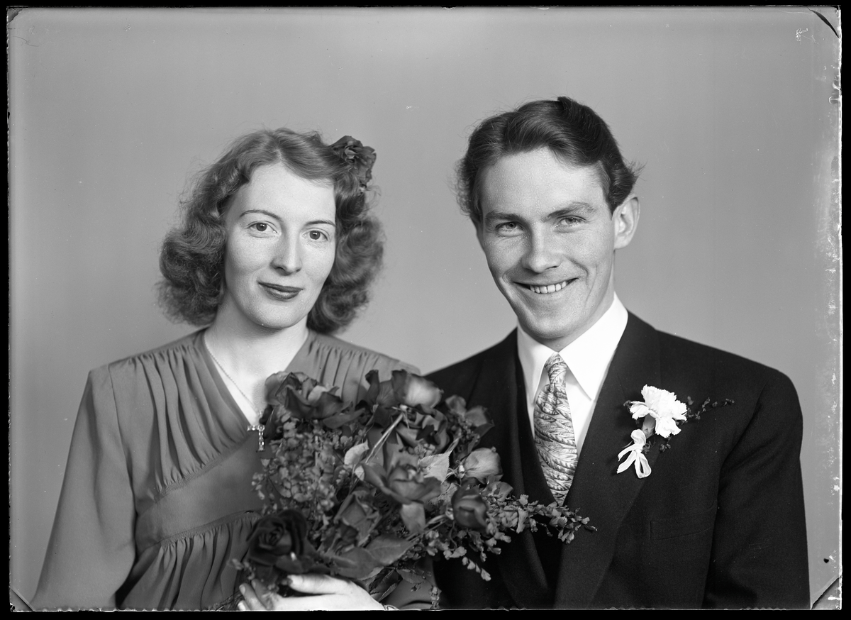 Bröllopsporträtt, brudpar. Bengt Palm, Villa Hemgården, Aspudden.