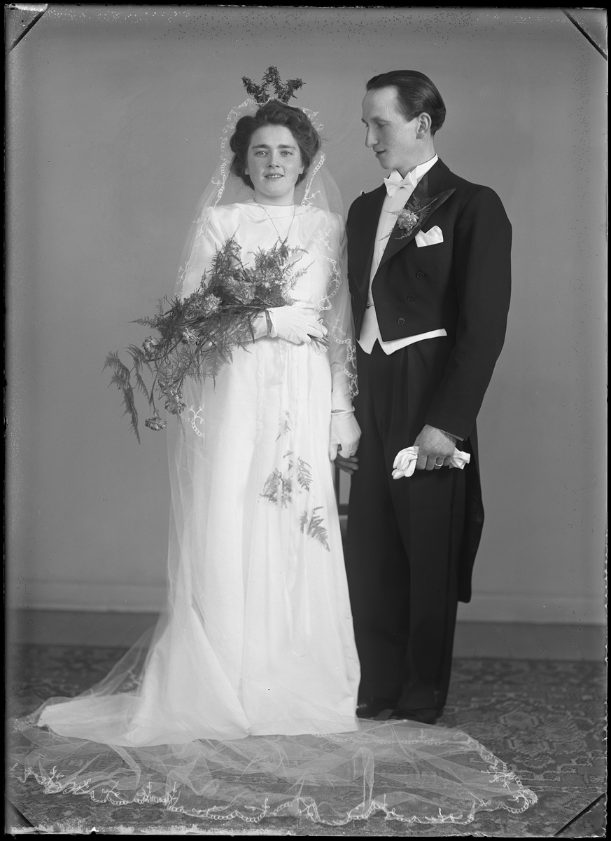 Bröllopsporträtt. Brudpar, Furir Axel Hägerström, Ridskolan, Strömsholm.