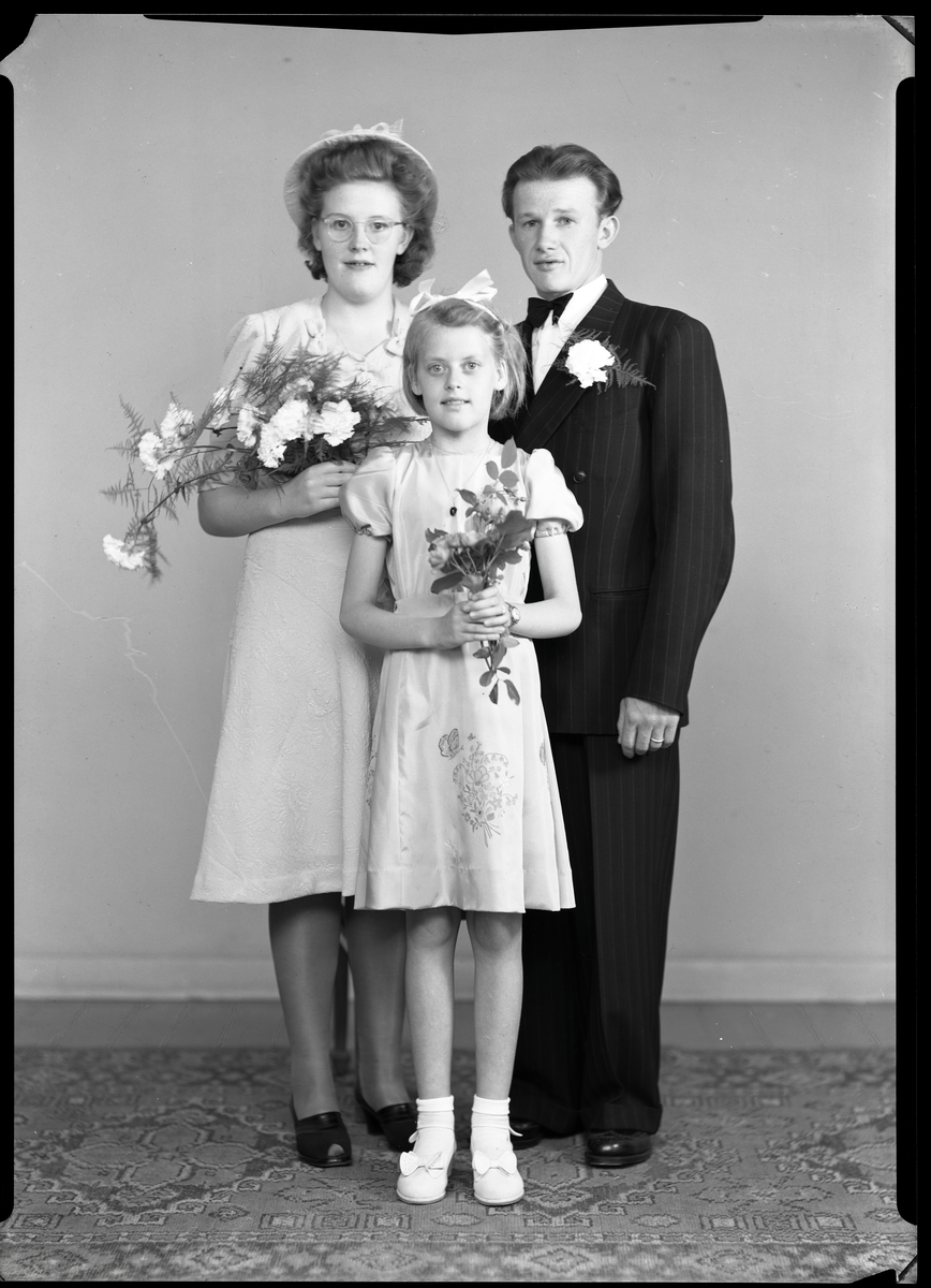 Bröllop, grupporträtt, tre personer, Stannio Matuszewski, Mölntorp.