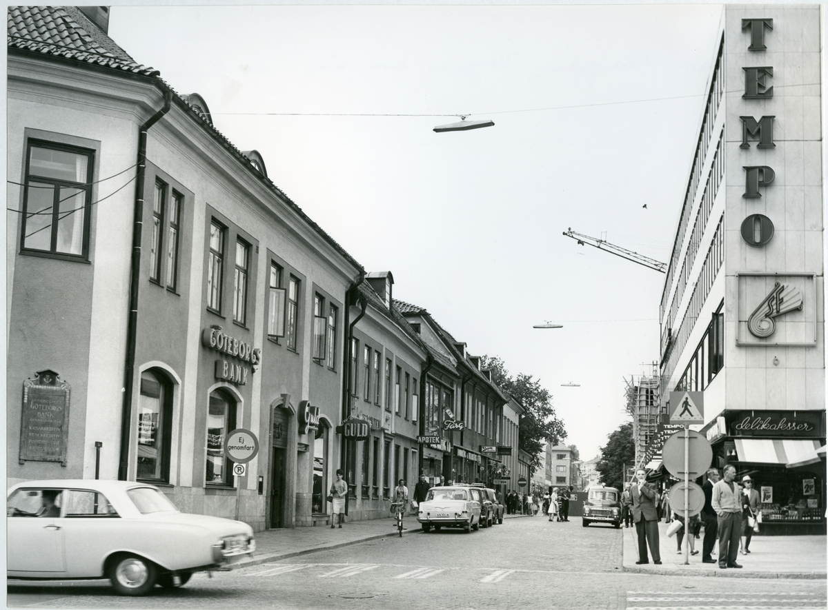 Hörnet Stora gatan/Vasagatan mot väster. 1963.