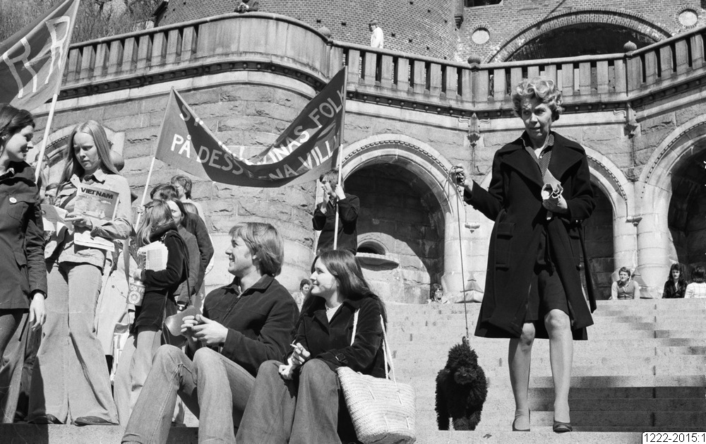 Vietnam demonstranter samlas på terasstrapporna