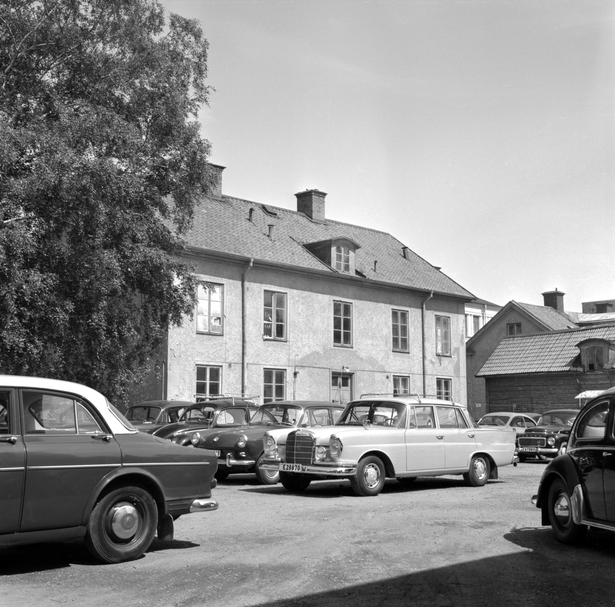 Gårdsinteriör från Drottninggatan 22 i Linköping. Vy från söder. Fastigheten som bland annat inrymt företaget AB Aluminiumkapslar (ALKA) revs kort efter fototillfället 1965.