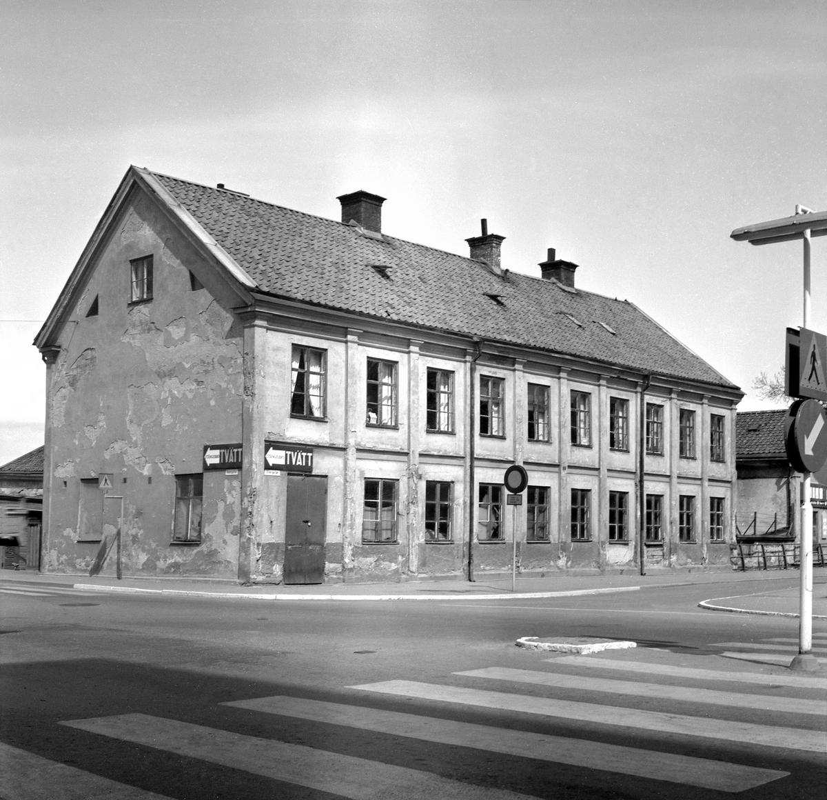 Fotoåret 1965 stod de gamla husen vid Stångebros västra brofäste ännu resta, om än i ett förfallet skick. Äldre Linköpingsbor kan minnas att byggnaderna utmed Stångån länge inrymde tvättinrättning. Bortom minnet nyttjades platsen för färgeri och garveri. Bostadshuset i hörnet av Hamngatan bar det tidiga 1800-talets prägel. Husen revs 1967.