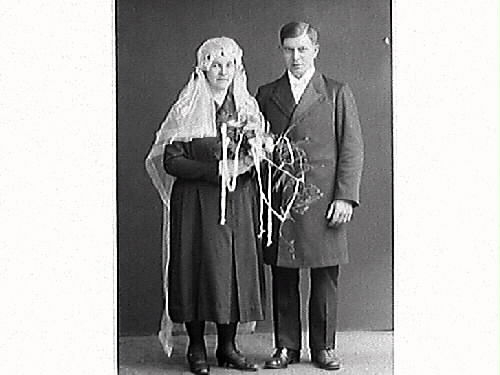 Karl Bengtsson med fru. Brudpar. Bröllopsbild. Bruden bär svart klänning. Träslöv nr 3