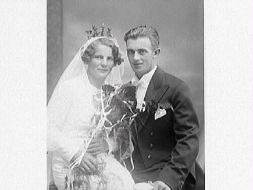 Brudpar. Bröllopsbild. John Johansson, Träslöv 12.