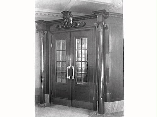 Interiörbild från Varbergs Sparbank. Bilden visar bankens entré från insidan.