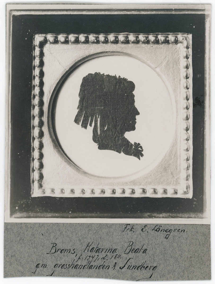 Porträtt på Katarina Beata Broms, gift Grosshandlare Sundberg född år 1747 och död år1811.