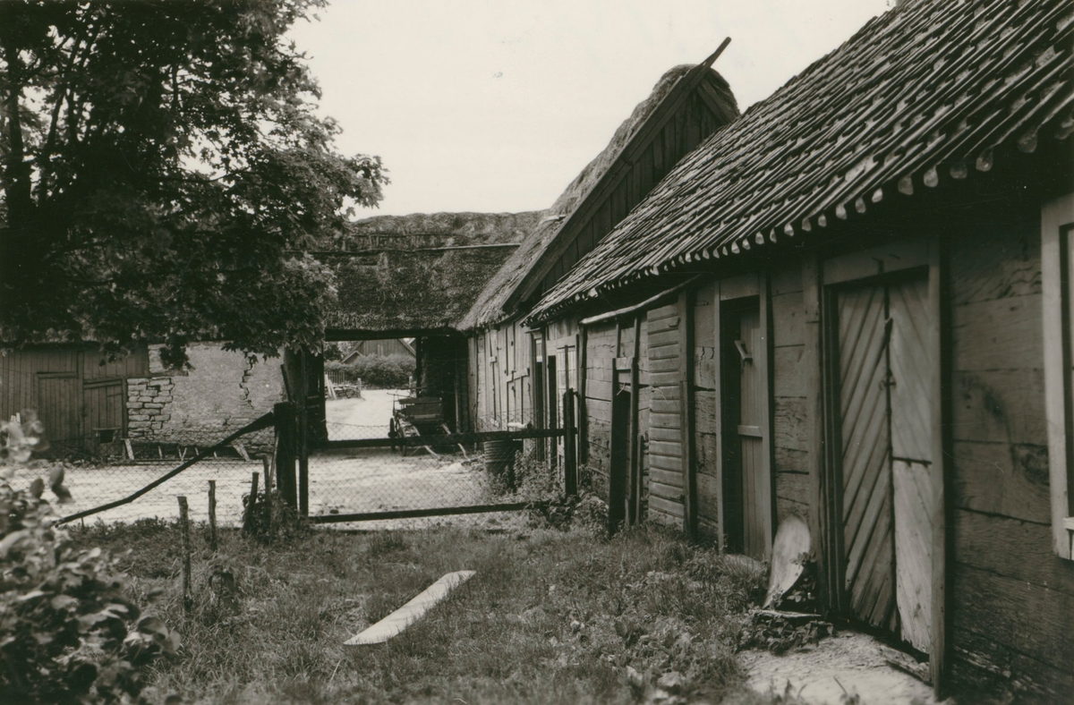 Portskjulet till höger. Till vänster Herbert Karlssons ladugård.