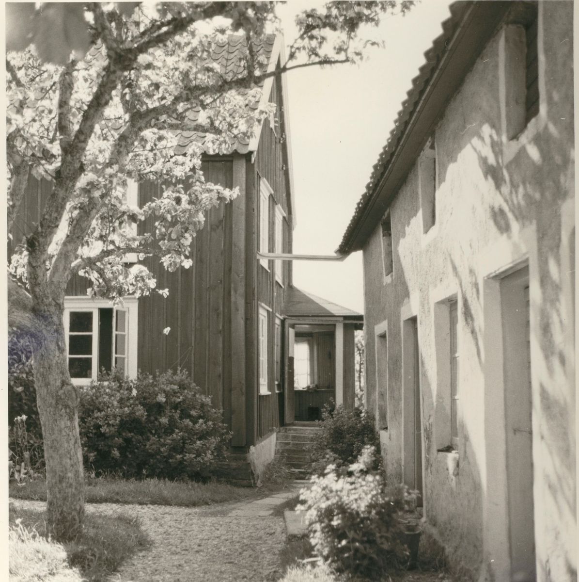 Boningshuset till vänster, norra flygelbyggnaden till höger. Ägare Edvin Andersson.
