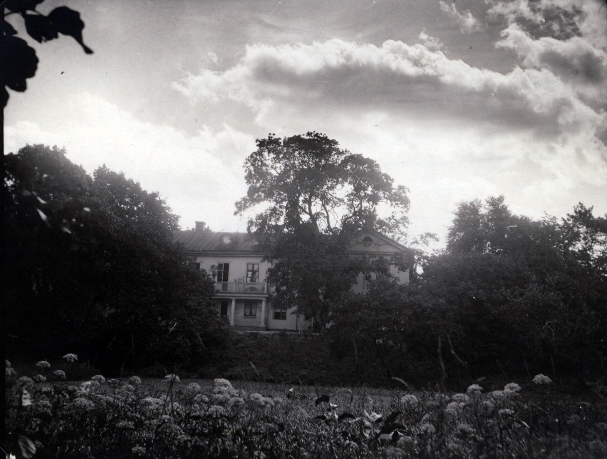 Titel: Skälby gård, baksidan av huvudbyggnaden. f. den 11/4 1850 d. den 11/1 1929 på Skälby.