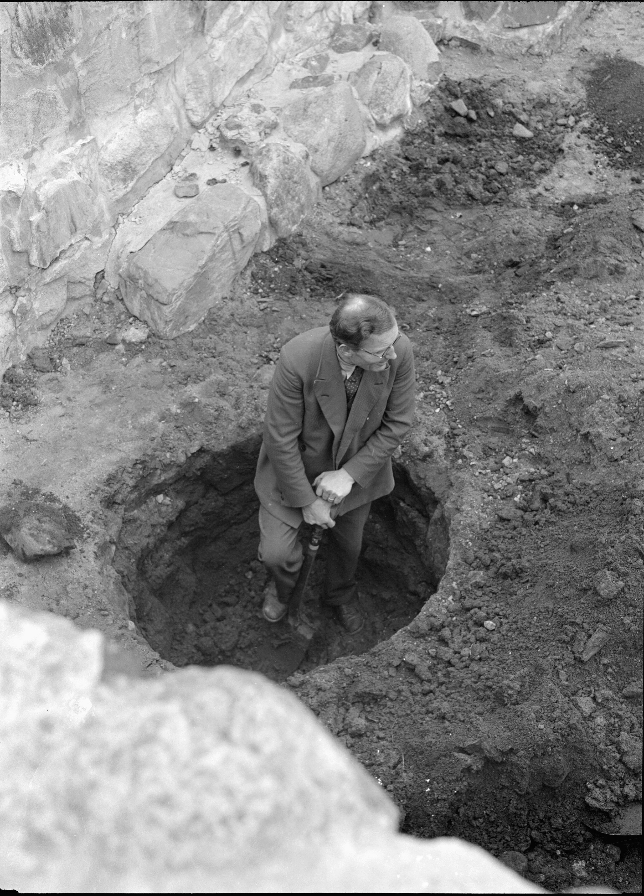 Kyrkoruinen, interiör, brunn under utgrävning.