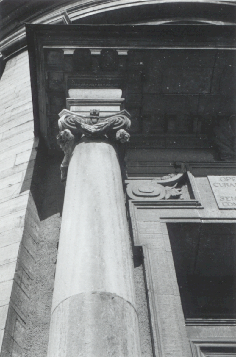 Ett joniskt kapitäl vid entrén till Kalmar domkyrka.