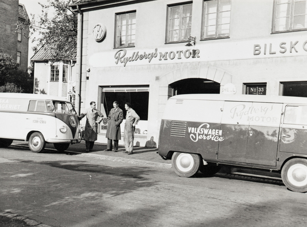 Rydbergs Motor. Utanför firman ses från vänster Arvid Kylberg, Hans Rydberg och Olof Wallin.