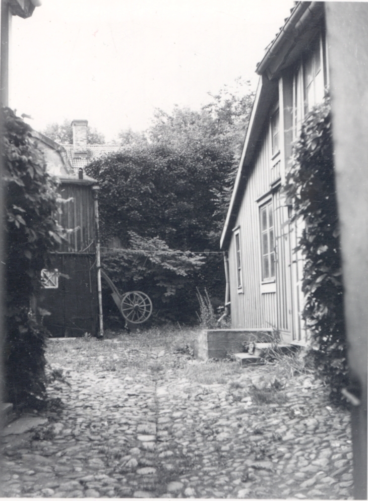 Kullerstensbelagd innergård på Fiskaregatan 48.