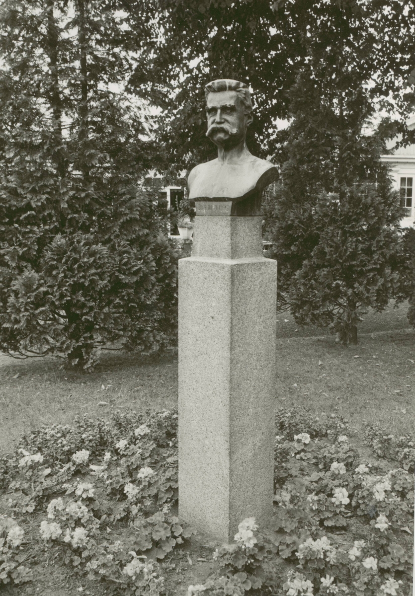 Byst föreställande August Palm vid entrén till Folkets park.