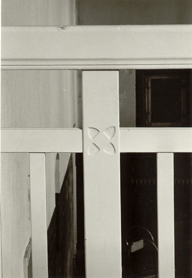 Detaljer från gamla varmbadhusets entresolvåning, räcket.