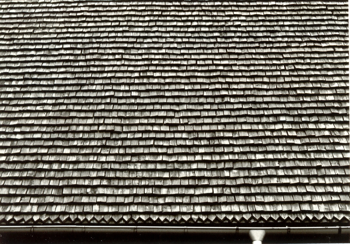 Pelarne kyrka efter restaurering. Ny spånbeklädnad å takfallet.
