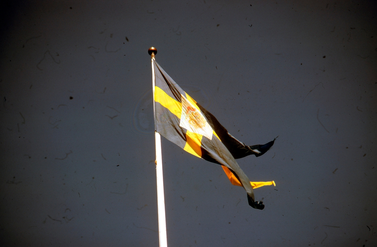 Den tretungade flaggan med kungens vapen visar att han befinner sig på Solliden.