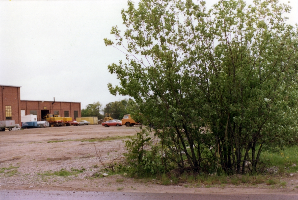 Ett gjuteribolag. En buske i förgrunden. Ägarna hette bröderna Karlsson och byggmästaren var Bertil Danielsson.
