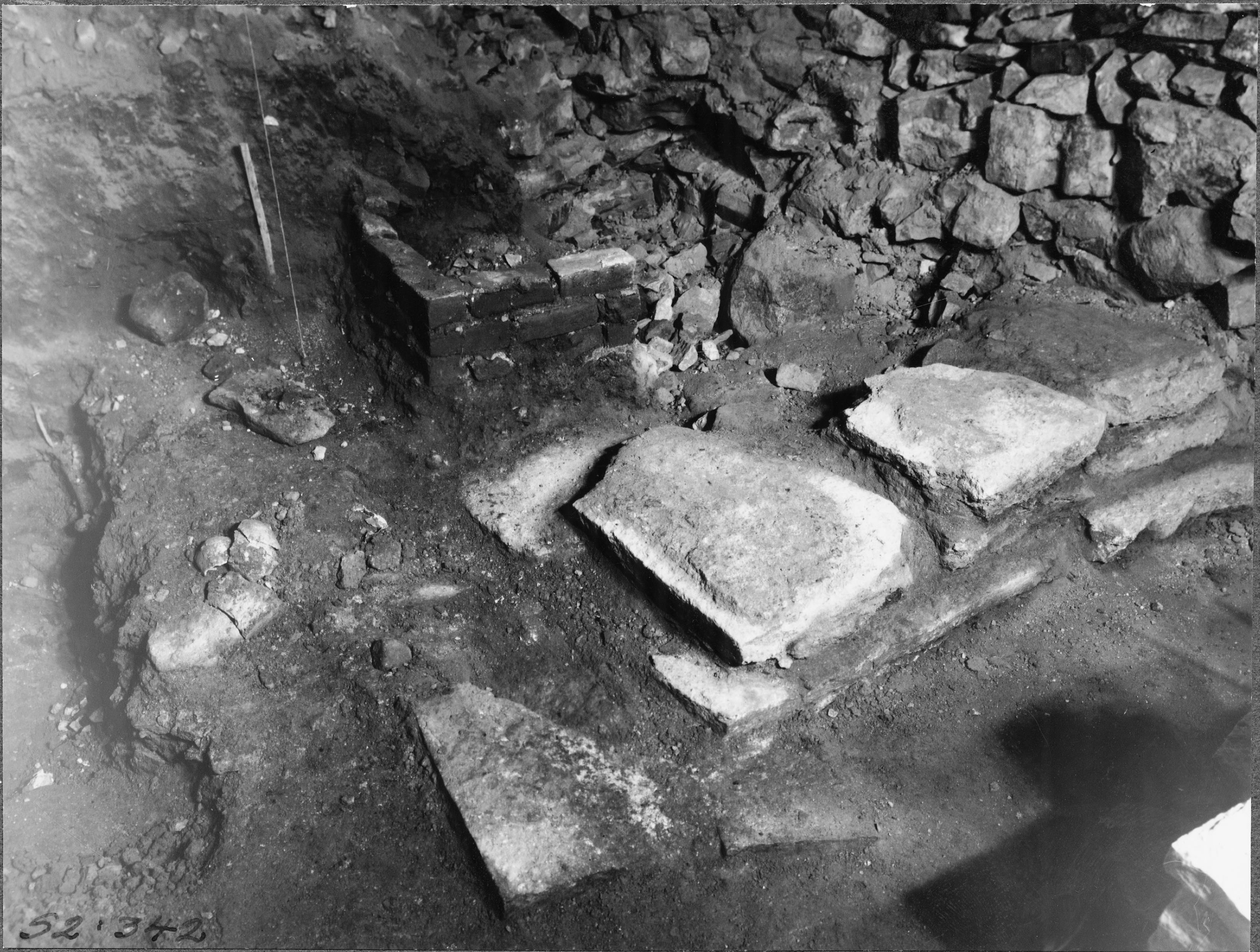 Grävning inom kyrkan, schakt X, tegelgraven under framgrävning, från nordväst.
