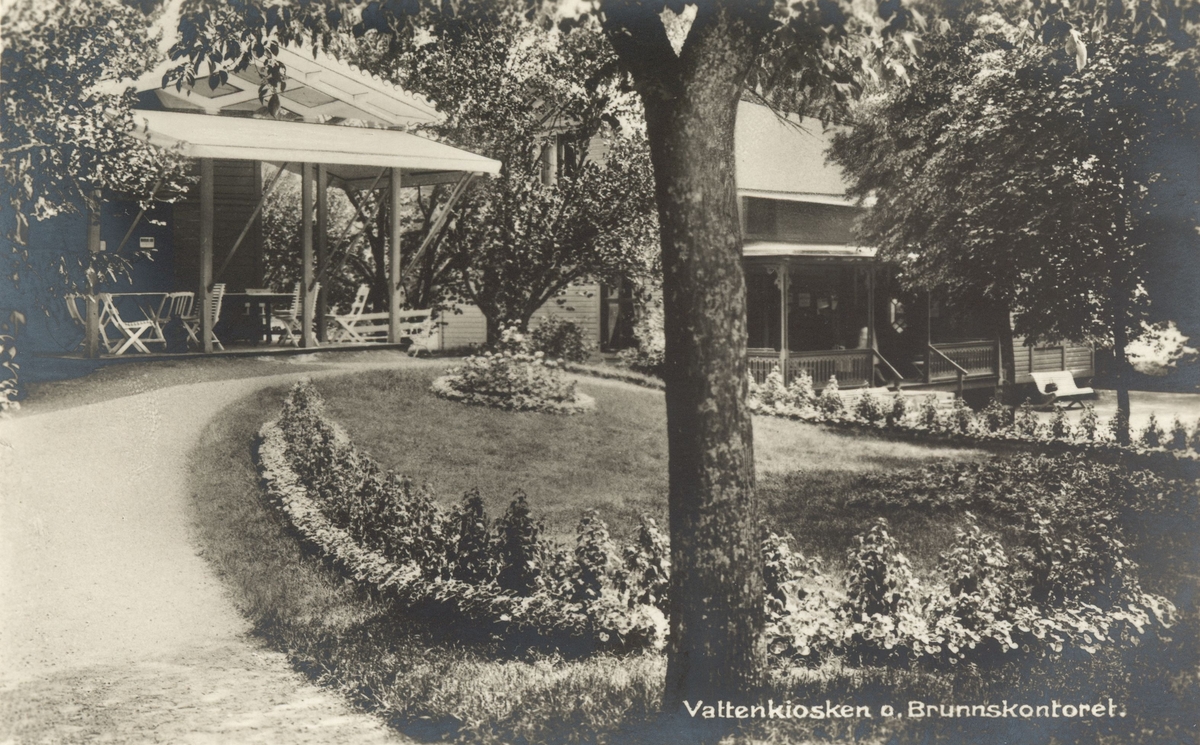 Vykort från Nybro med motiv från vattenkiosken och brunnskontoret.