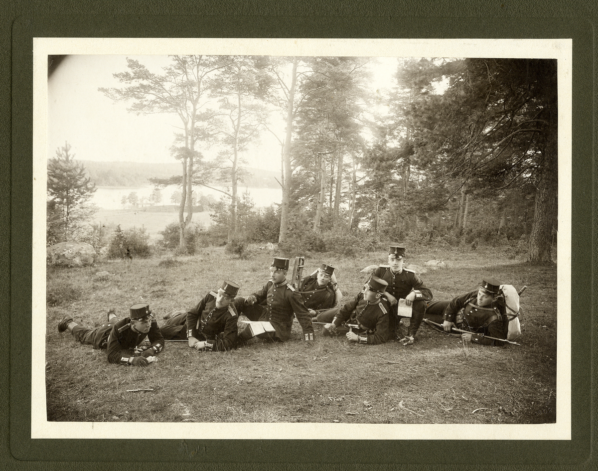 Några officersaspiranter har tagit en paus i gröngräset i närheten av Kronobergs hed.