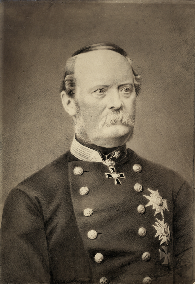 En äldre man i mustasch, iklädd uniform med ordnar.