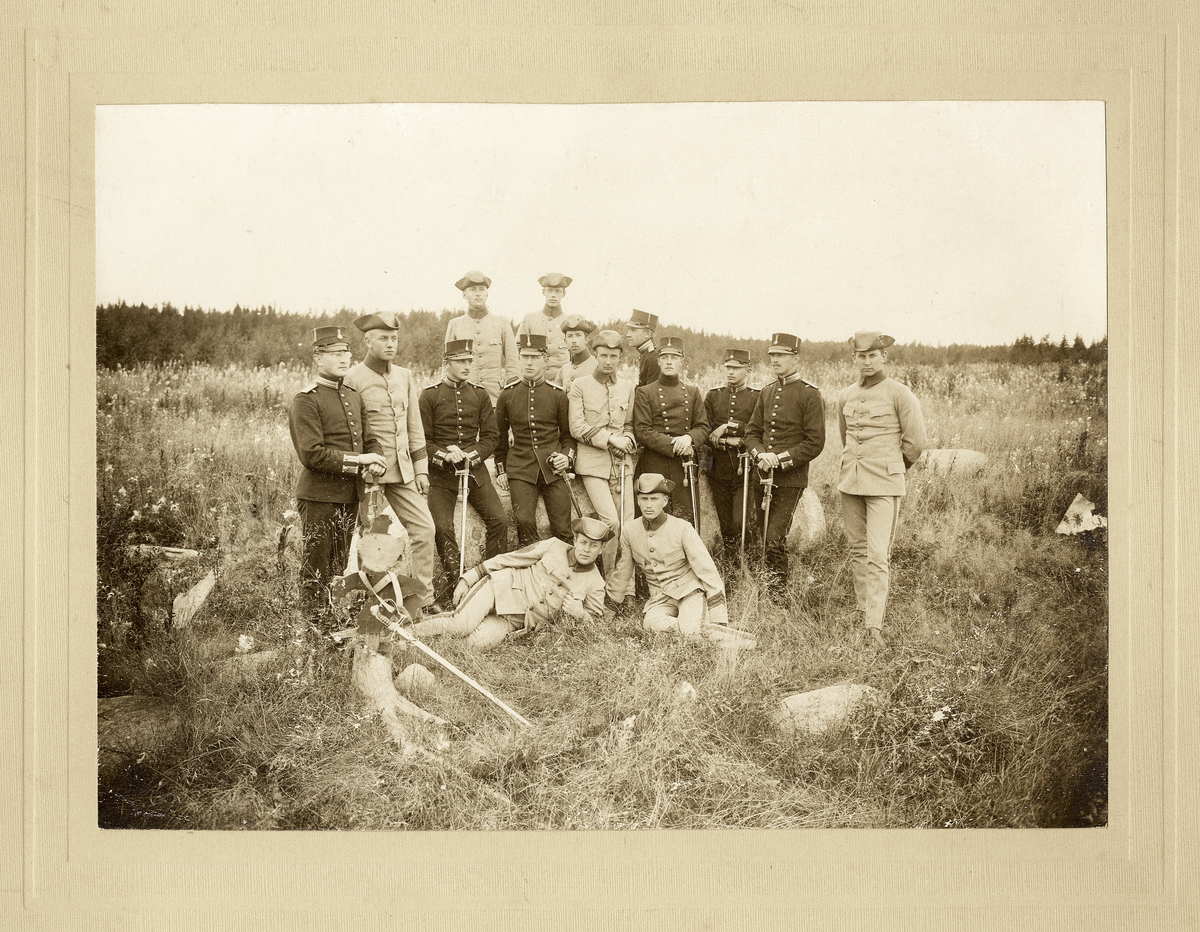 Officersaspiranter vid I 11 år 1908, trol. någonstans på Kronobergs hed.