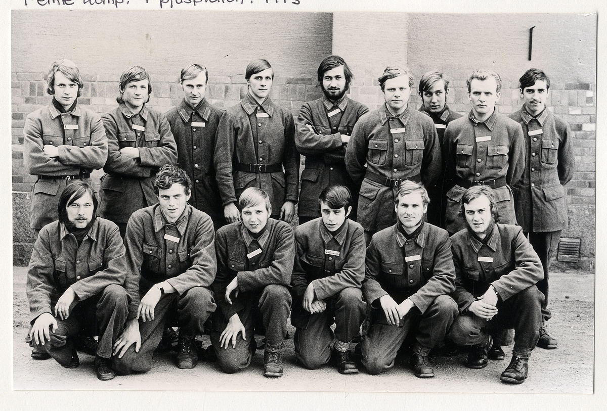 Femte komp. 1 pjäspluton utanför en kasern på I11, 1973.