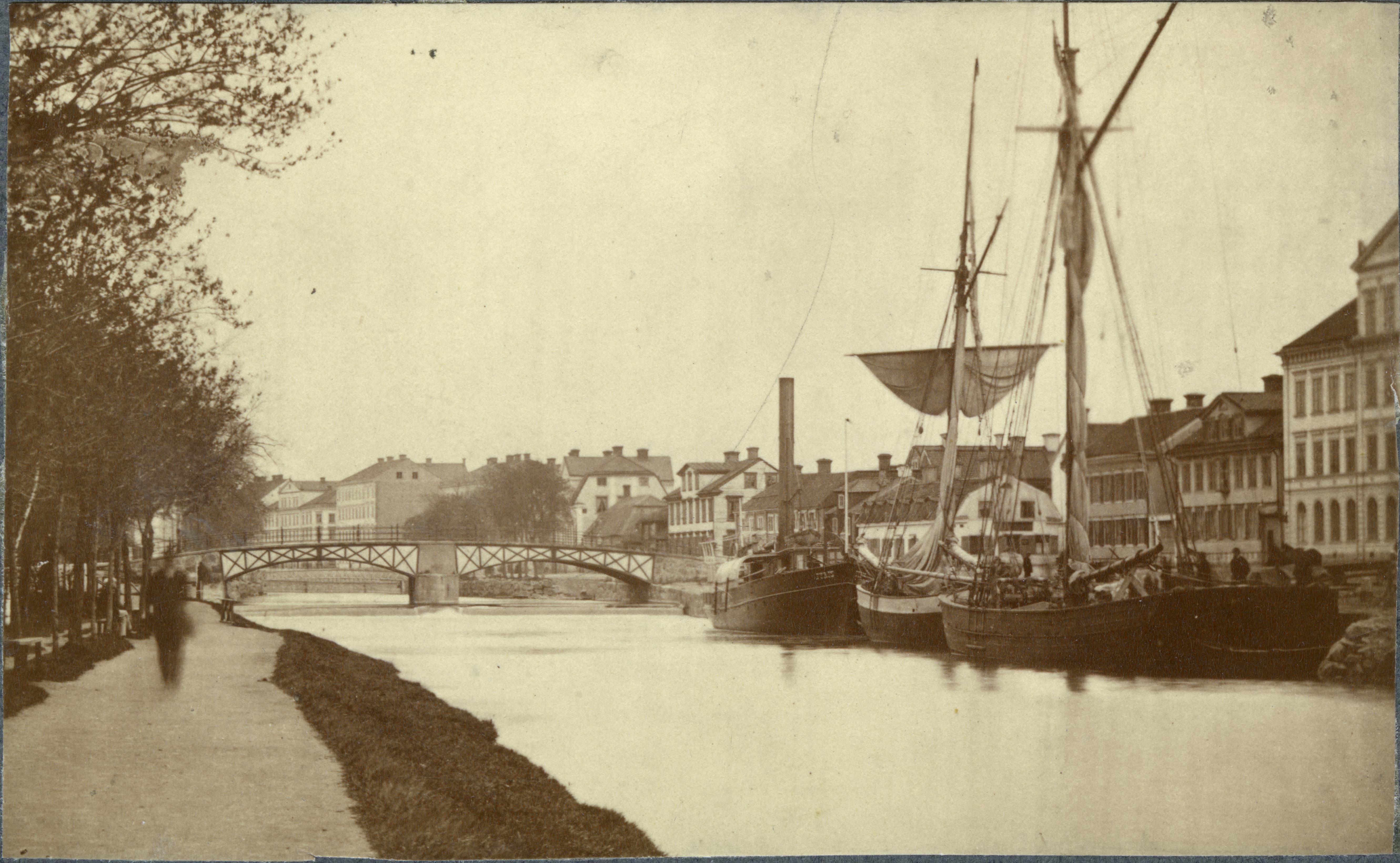 Ankrade båtar i Fyrisån, vid hamnen nedanför Islandsbron.