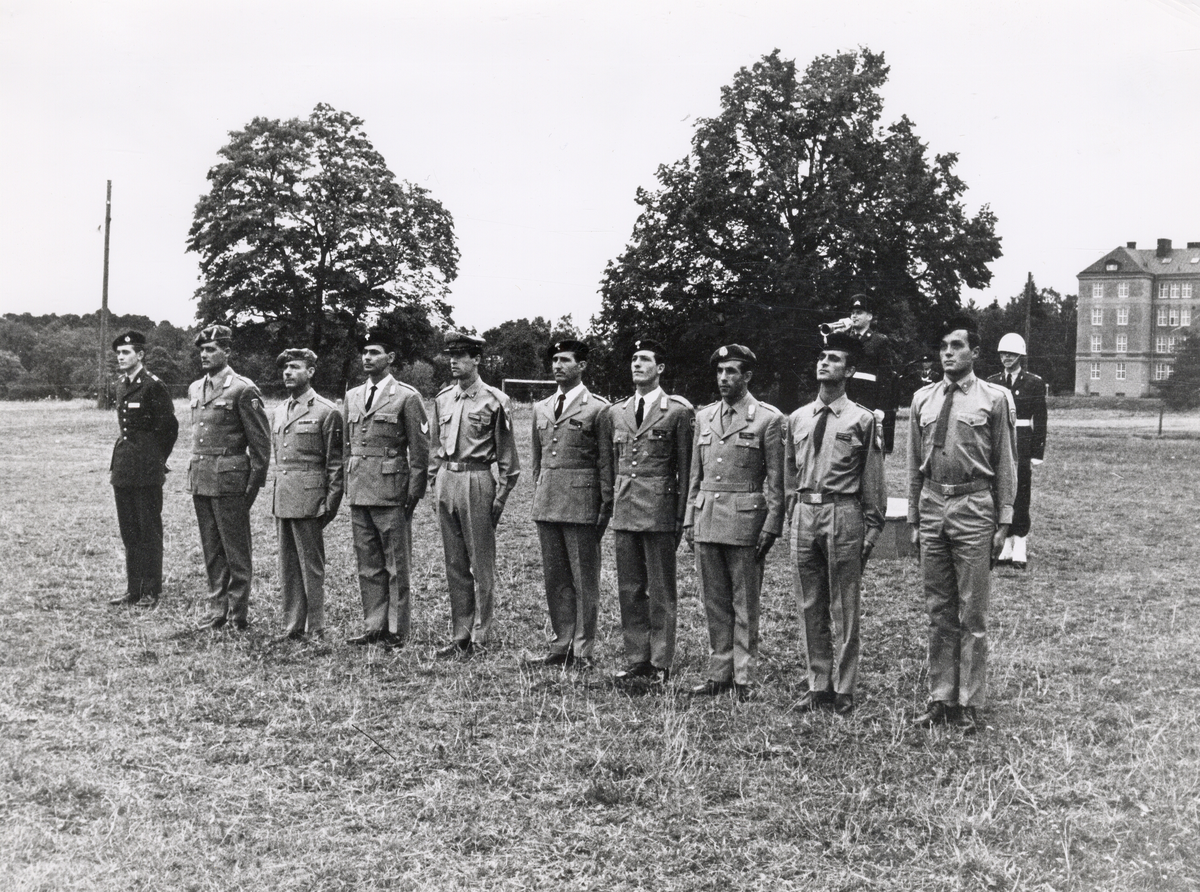Titel: VM i militär femkamp. Uppsala 1967. (världsmästare: Bengt-Åke Christensson, I11). Parad för fanan.