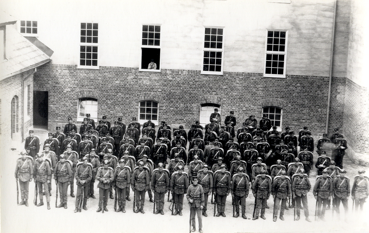 En pluton har uppställning på kaserngården.