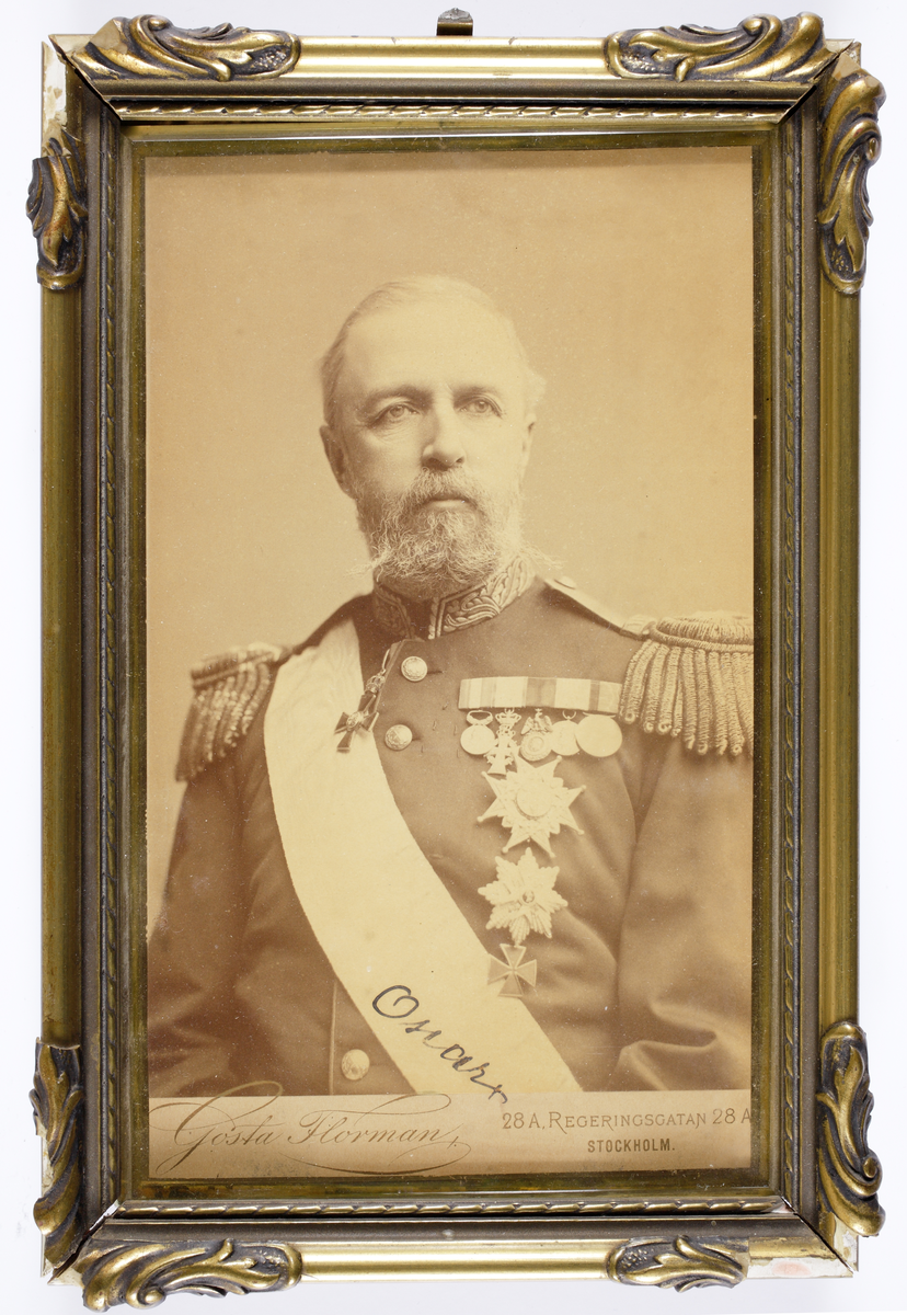 Ett inramat foto (med autograf) av kung Oscar II (1829-1907), reg. 1872-1907.