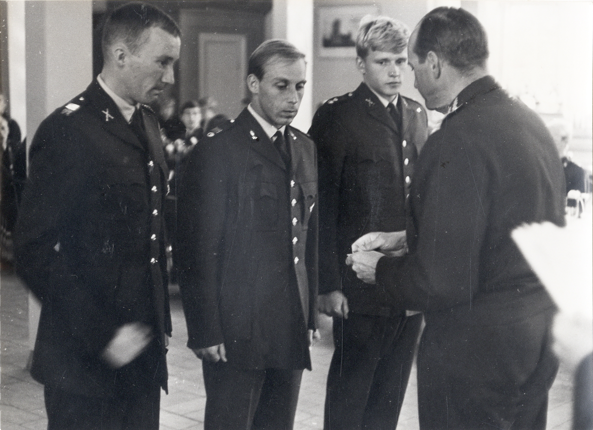 Prisutdelning av CA general Almgren. T.v. Carl Lago-Lengqvist, I11. I mitten: Rolf Björklund, A9.