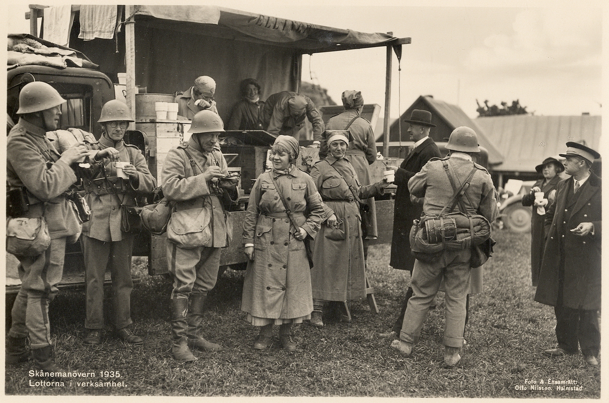 Lottorna i verksamhet. Man bjuder manskapet och en del inbjudna på kaffe m.m.