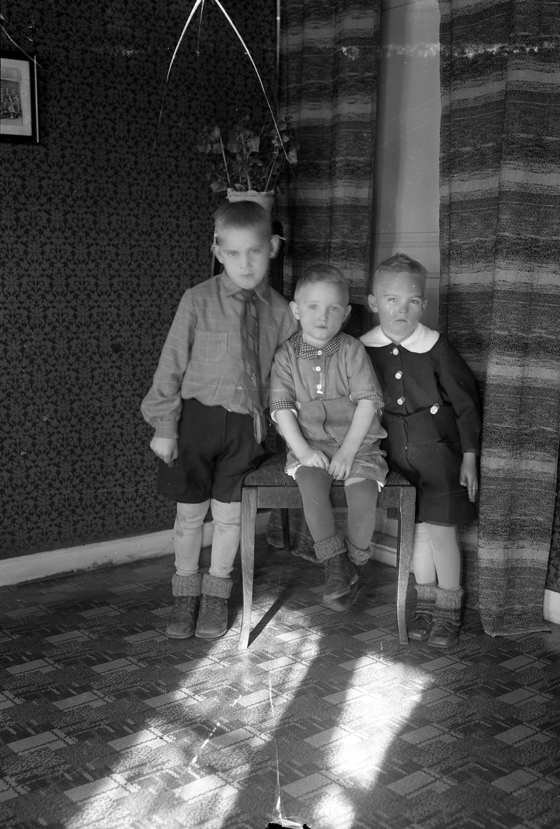 Foto av tre små pojkar (bröder) i ett vardagsrum.