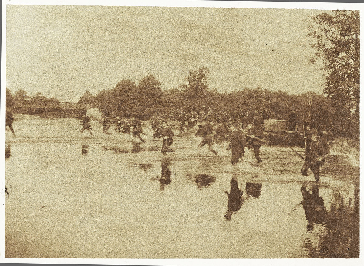 Infanteriregementet nr 11 vadar över Rönneån vid Ljungbyhed.