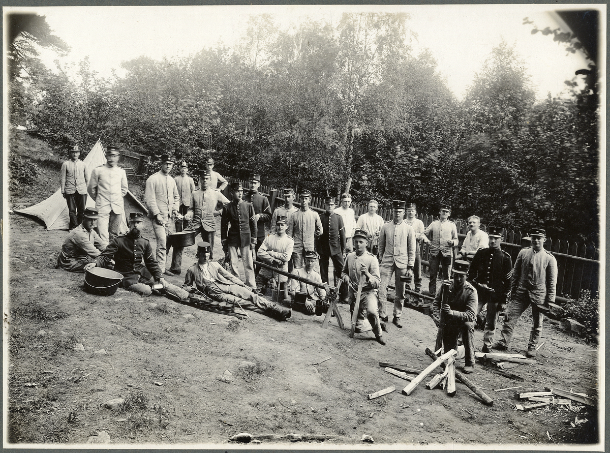 Kokövning på sluttningen mot Grännaforssa, under övervakning av distinktionskorpralerna Lindén, Palmér och